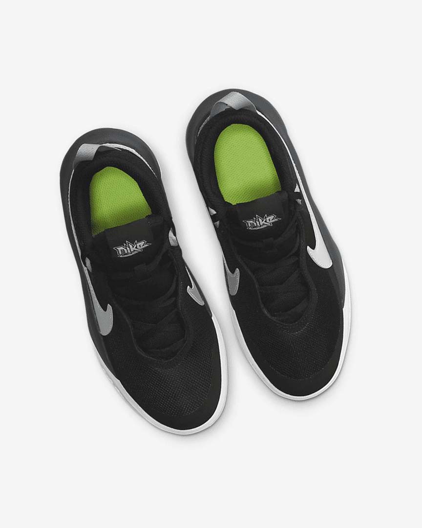 :: Black / White / Metal Silver Boy Nike Team Hustle D 10 Basketball Shoes | CA4565