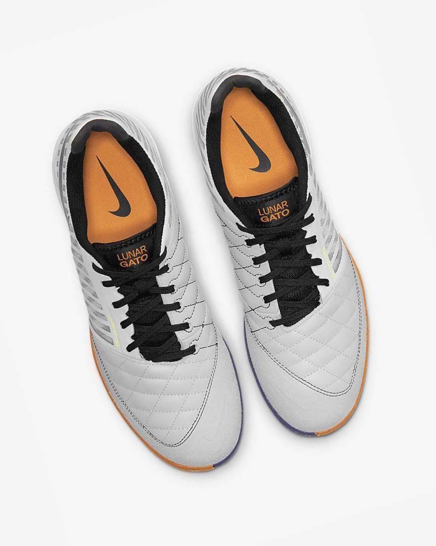 :: White / Deep Yellow / Black Men's Nike Lunar Gato II IC Soccer Shoes | CA1155